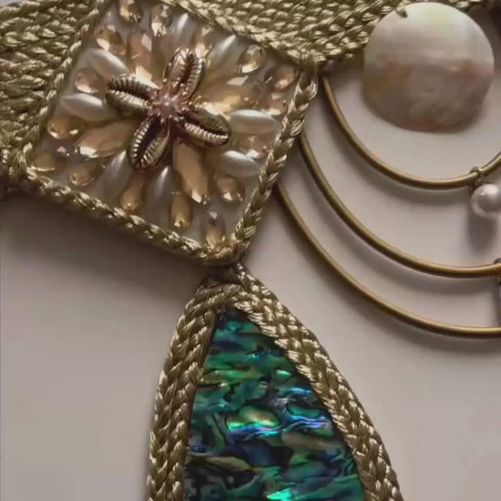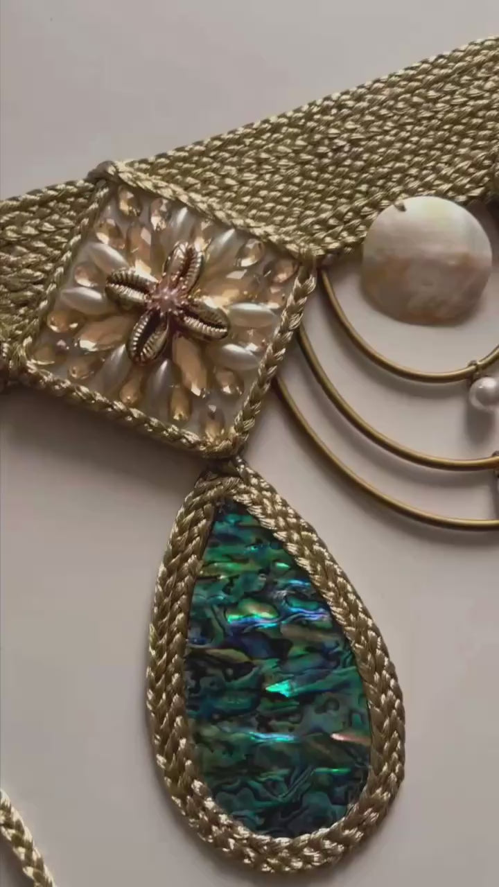 Materials - Metallic Macrame, Capiz Shells, Paua Inlay, Mother of Pearl Shells, Acrylic Jewels, Charms