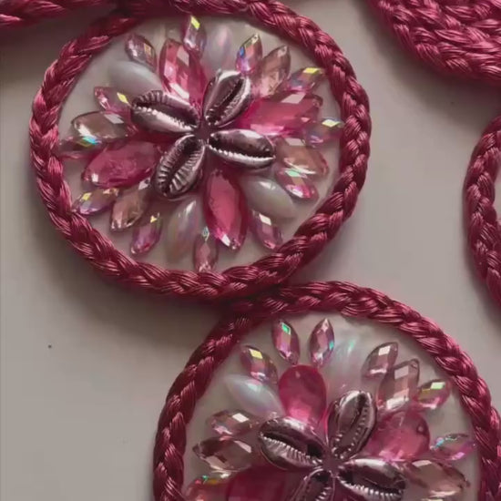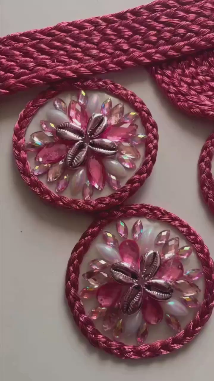 * Materials - Metallic Macrame, Capiz Shells, Acrylic Jewels, Charms