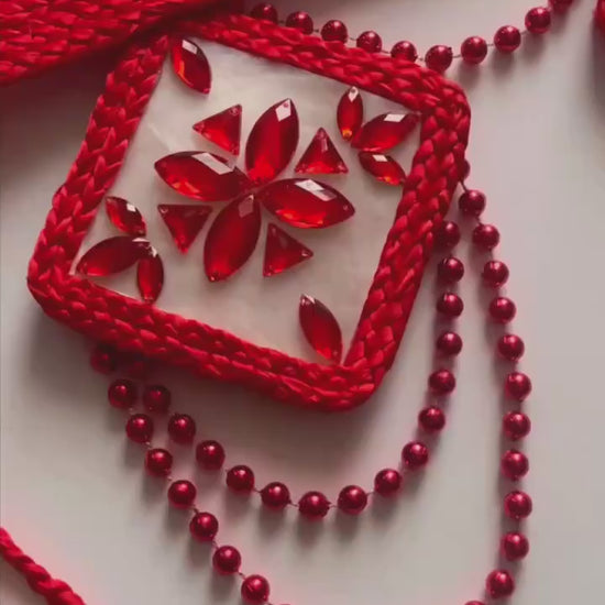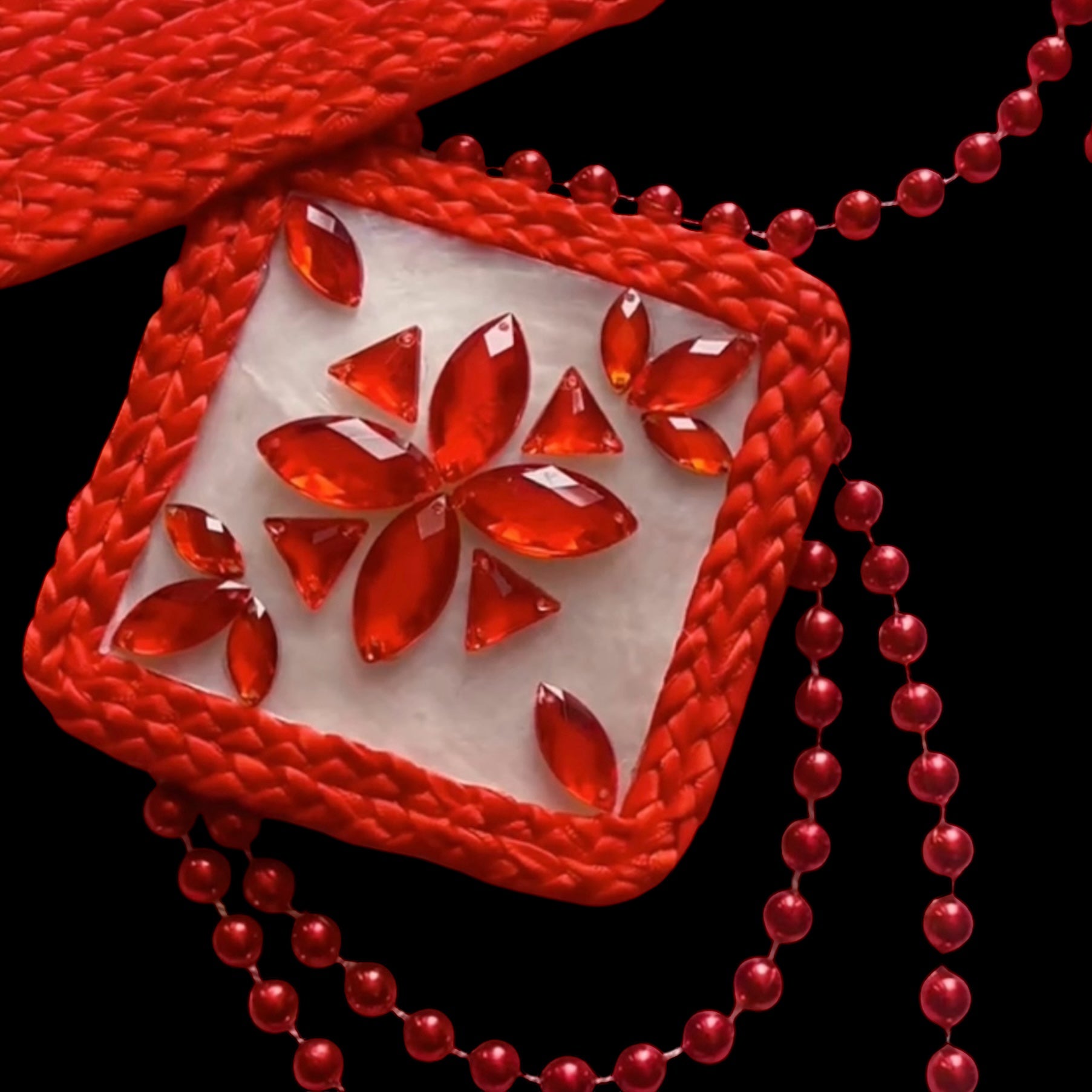 * Materials - Satin, Capiz Shells, Acrylic Jewels, Beads, Charms
