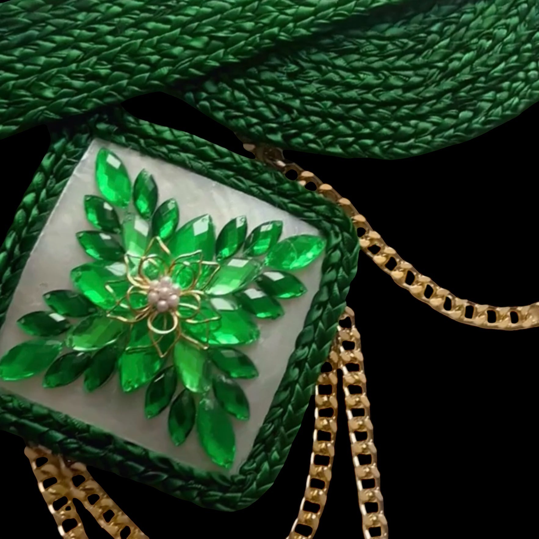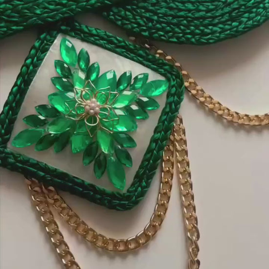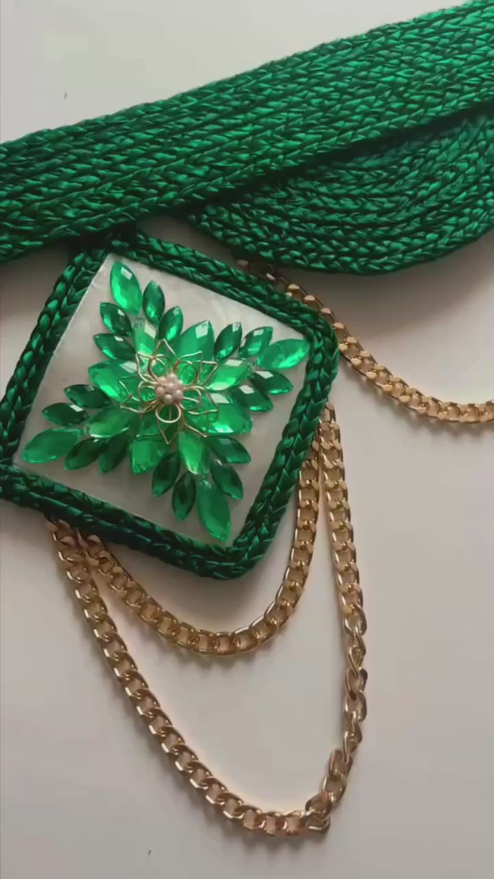 * Materials - Satin, Capiz Shells, Acrylic Jewels, Beads, Chains, Charms